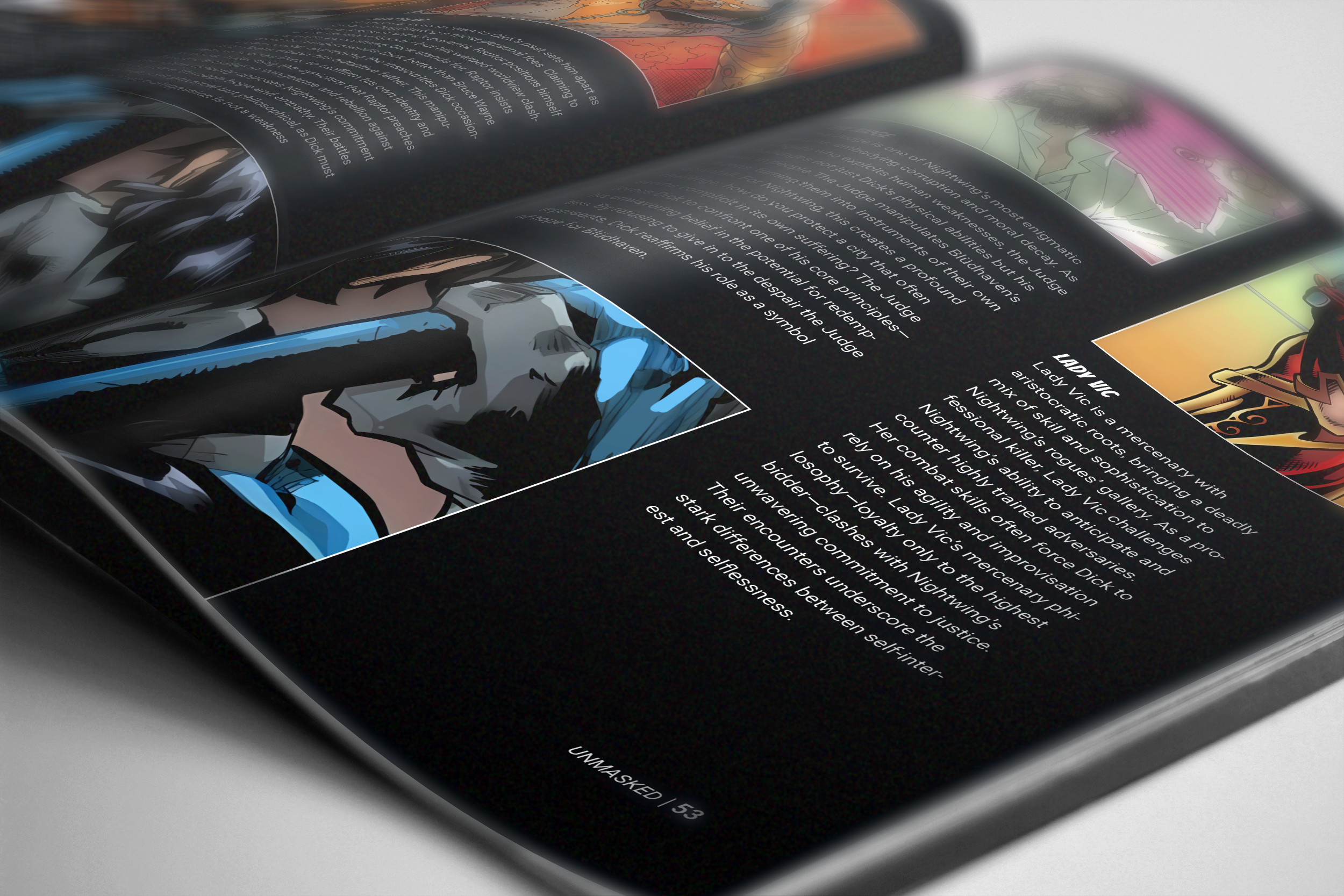 Problem: Character-focused publications are somewhat of a rarity within the comic book sphere, thus creating an opportunity to develop a magazine that explores a single character in depth.Solution: I developed a character-centric magazine using clean layouts, curated imagery, and character-inspired design choices to showcase their story and engage fans through easy to read content.